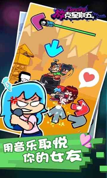 《放克星期五》是一款有着魔性音乐,上头节奏,精致可爱美式画风的音乐游戏。你想和你的女朋友约会,但是她的恶魔父亲却不想同意,用你的歌声和舞步打败她的父亲并取得认同!你要记住你的对手的每一个音节并给予相应的回馈,给随着音节唱歌跳舞取得亮眼的表现以此来打败他!不仅仅是她的父亲,这款游戏里还有很多要阻止你的人,快拿起你的麦克风舞动并一展歌喉,打败他们!一起来加入这场疯狂的放克星期五吧!