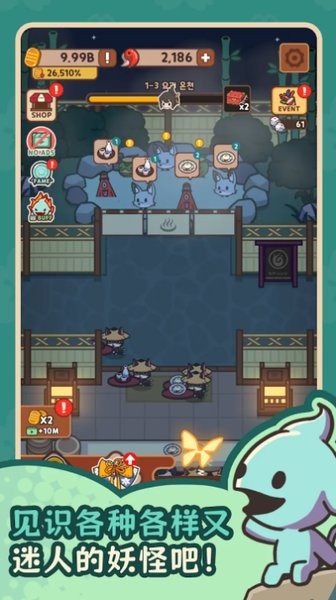 游戏里的妖怪角色都很有个性,有些还蛮可爱的。玩法主要是经营餐厅,同时还要带团队去探险、解谜,挑战各种地图上的敌人。最棒的是可以给员工换装,搭配各种装备,感觉特别有趣又有成就感。