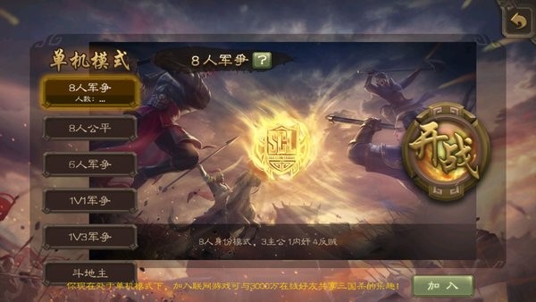 4、身份模式:五人军争场、八人军争场、五人标准场、八人标准场。