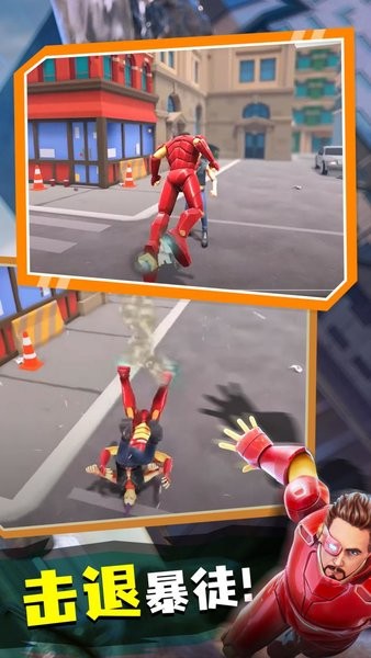 英雄类的动作手游,玩家将会看到熟悉的钢铁侠形象,有着很多的战斗等你来参与,利用自己灵活的操作释放技能,击败场景中的敌人,守护城市的安全