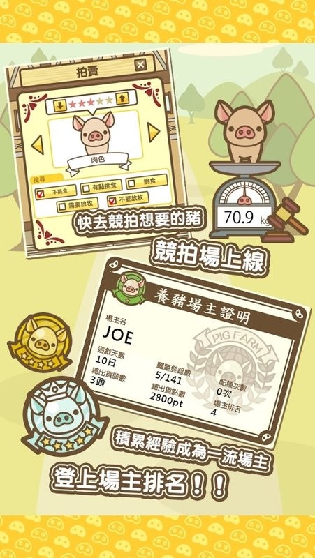 最初只能进货稀有度低的猪,升级后就能进货更稀有的猪了!
