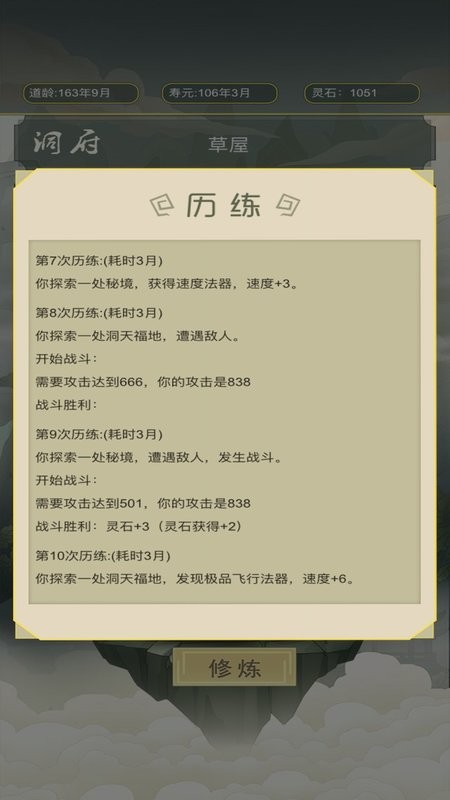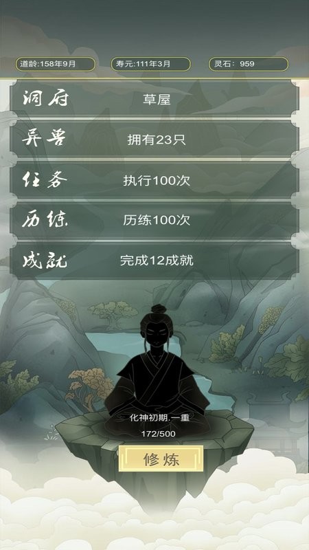 从杂役弟子开始修仙最新版是修仙题材类型单机版文字游戏,拥有着水墨国风的游戏画面,带来精彩丰富的玩法,提供各种异兽可以捕捉收集,助力修炼,不断完成历练任务,获取更高成就,尽情冒险,放置挂机,提升修为,实现飞升!