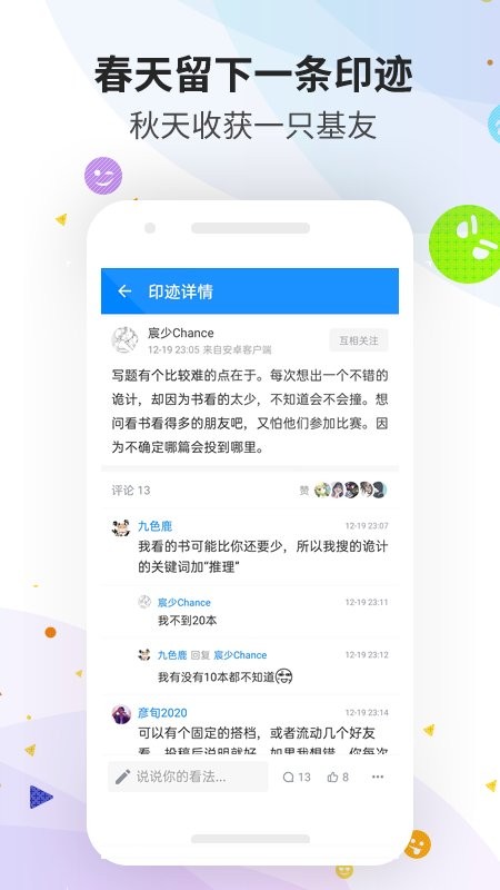 1.能够和书友互动吐槽,能对喜欢的文章发布评论