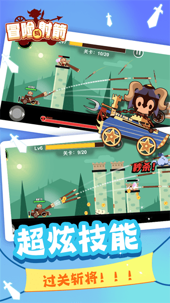 《冒险与射箭》是图标配不上内容的游戏,通过调整战车的装备和射击方向,来抵御不断进击的敌人,并且不断的闯关,击败最终的boss!
