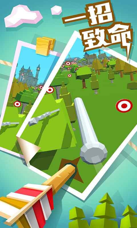 这是一款画面十分逼真的3D射箭类游戏,玩家控制力度射出箭后,可以左右移动来躲避障碍,努力飞行至最远距离,争取更高分。