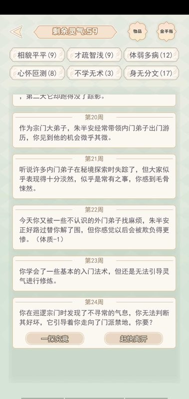 选择完随机情节之后,会出现相应的属性加成或减少;