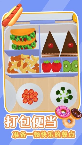 饭盒准备就绪是可以在游戏中自己制作各种食物的游戏,玩家在游戏中可以快速的进行游玩,而且游戏的操作是非常的简单,可以在游戏中快速的进行游戏,使玩家在游戏中可以自由的进行各种有趣的挑战和各种冒险,成为一个收纳大师。