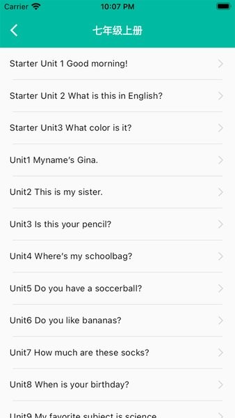 4.包含七年级到九年级的单词和课文(同步翻译),且都配有高清的真人发音,可跟读、可点读。