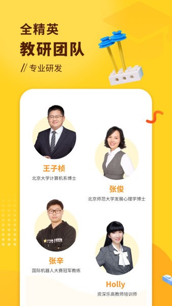课程教研团队由北大计算机系博士、北师大教育心理学博士、乐高机器人冠军教练领衔,研发出适合中国孩子的STEAM课程体系,有趣、专业、科学、实用!
