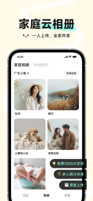 它的功能真的很强大,不仅支持一键上传照片,还自动分类管理,方便查找。最让我喜欢的是家庭共享的功能,无论家人天各一方,都能随时查看彼此的动态,了解对方的生活情况。比如可以看看宝宝的成长照片,或者一起回忆上次全家出游的美好瞬间,增进感情。