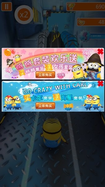 神偷奶爸:小黄人快跑(果酱工厂版)是很有趣的跑酷游戏,在神偷奶爸中,格鲁忠诚又呱噪的小黄人已经准备好迎接最艰难的挑战啦。这次更新带来的是大家期待已久的果酱工厂模式了,相信大家一定会喜欢的。快来扮演小黄人,在搞笑的快节奏挑战中与他人竞争,打动你的老板(前任老板?)――超级大反派格鲁!跳跃、飞翔、躲避障碍、收集香蕉、恶作剧,并打败其他反派,赢取“年度小黄人”的称号!