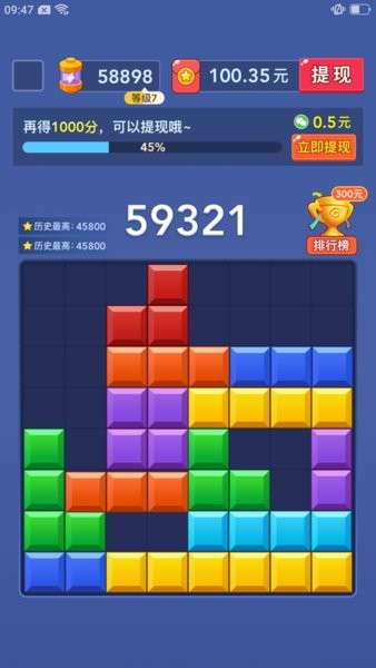将所有的方块通通都消除,上手简单轻松有趣,一边体验消消乐一边领取红包;