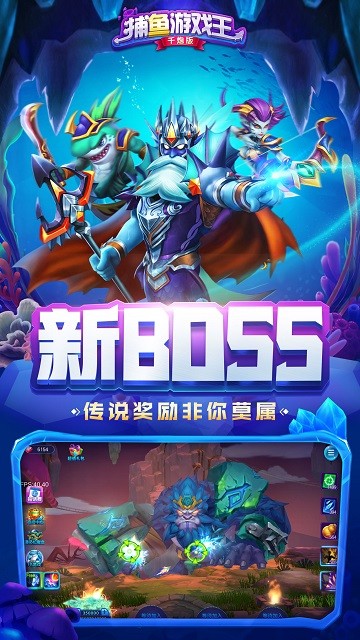 游戏中有多种BOSS鱼种,玩家需要使用超强千倍炮对抗它们,同时还有独创技能狂暴分身轰翻全场,助你成为深海捕鱼大师。