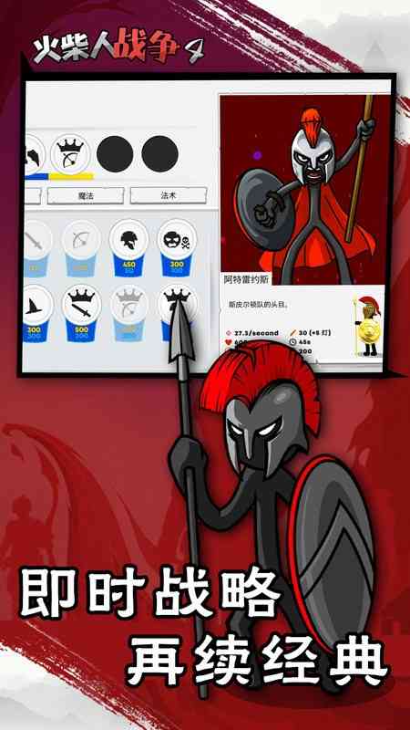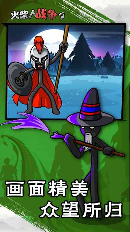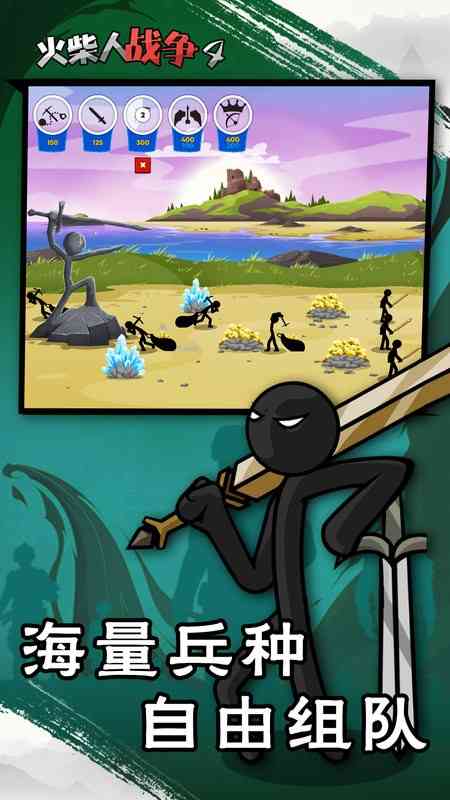 作为火柴人战争系列的又一经典力作,《火柴人战争4》不仅从画面音效上进行了迭代更新,创新优化,还创新了全新的军队编制技能配置等功能;是一款基于火柴人题材的战争类的动作游戏,游戏中玩家将亲临激烈刺激的战场,指挥你的火柴人勇士进行作战,而且游戏中有着各种火柴人士兵可供训练!游戏中玩家需要组建自己的火柴人战队,同时还必须知道他们参加战争,只有灵活的操作才能顺利击败各种敌人哦!