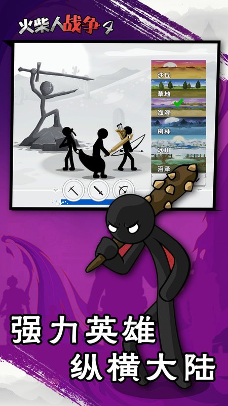 火柴人战争4,操控火柴人进行战斗玩法,游戏中你将需要组建自己的火柴人战队,打造一支王者之师,游戏中不同种类火柴人将使用各种各不同的武器,玩家需要活用火柴人诸兵种的特性,完成战斗挑战,感兴趣的玩家可以下载体验一下哦!