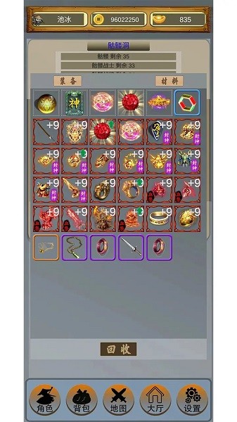 3、玩法上开局游戏里还有tap的签到都拿了,猛看广告,广告无限次数,把武神之力和职务系统都先买了拿称号。然后把新手剑强化到+7太高有点费时间。然后设置里把自动回收设置为2品以下,保留沃玛以上。自动跳转打开,可以自动无限循环刷图。这里需要注意的是得等到打完骷髅洞的boss之后再手动点开野外地图才能自动无限循环,不然会一直卡在骷髅洞。