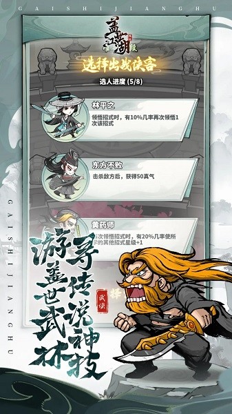 玩家可自由选择并搭配不同侠客,每位侠客拥有独特技能和属性。