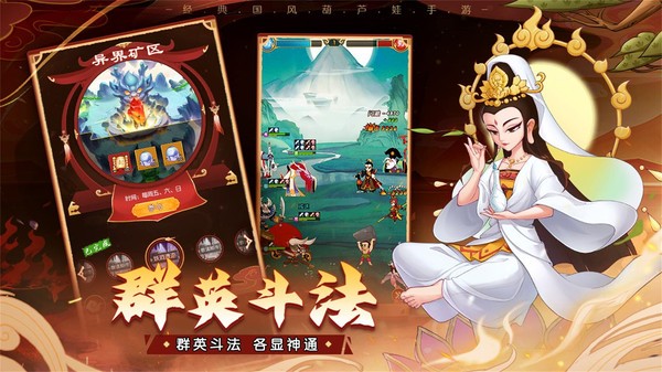 《葫芦娃:奇遇之旅》是一款竖版放置卡牌手游,简单操作即可享受无尽游戏乐趣!全天收益,挂机也有资源拿!蟠桃大会、澧都战场、心魔海、秘境、丰富的副本内容等你来探索!更多好玩有趣的内容,尽在《葫芦娃:奇遇之旅》现在就下载,一起救爷爷吧!