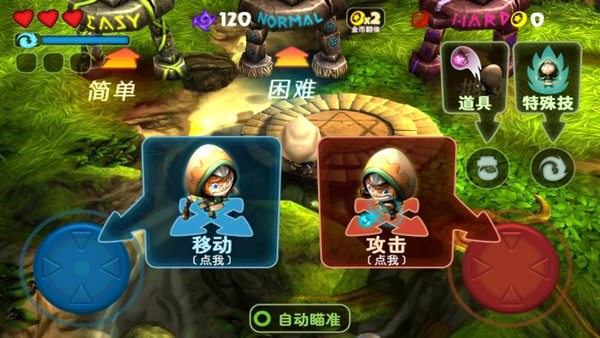 画面可爱的3d射击游戏,拥有宏大的怪物地图,让玩家永无止尽的挑战!爽快的杀敌动作、丰富的武器、多变的道具、充满危机的天候变化、强大的召唤兽!游戏采用3d双摇杆操作,支持自动瞄准。还有试炼之森中可怕的怪兽,炸弹魔、哥布林、母虫、食人花,这是一场生存的挑战!