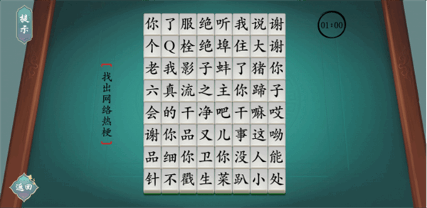 1.有趣的休闲益智游戏, 要求在一组相似汉字中找出不同的那个汉字