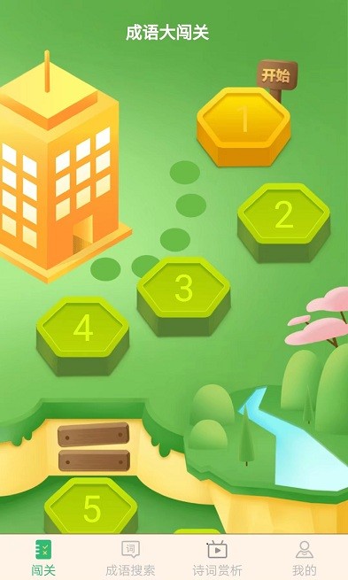 4、很卡通的游戏界面,每一个玩家都能进入到这个关卡中去学习丰富多样化的成语知识。