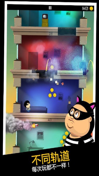 有趣的休闲游戏。游戏讲述了老爸在翻阅了一本书之后,就展开了自己偷盗生涯。整个过程无疑充满了惊险刺激,老爸不仅要甩开警察,还要躲避各种陷阱。一路上还要拾取各种金币,道具等。游戏中还有不少捷径,值得玩家慢慢探索。