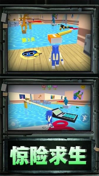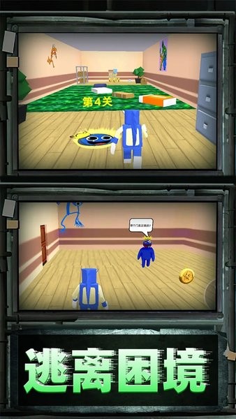 3、逃离彩虹校园密室,逃离蓝色朋友的追捕,解开密室.谜题,活着离开!