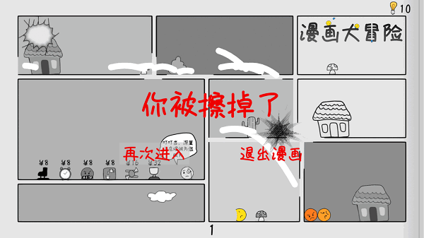 2、玩家可投掷橡皮擦,橡皮擦会在其运动路径上留下擦痕,碰撞到漫画格或怪物的橡皮擦会消失。