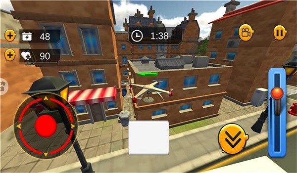 一款无人机定时定点投送物品,可以随心操纵上下左右,上升和下降,更可以切换视角,更快更好的投放物品,中途一定不要碰撞任何建筑物,玩具飞机战场,体验虚拟现实给你带来的快感,你还可以换更高级的无人机及其装饰!暗箭翔龙无人机,定时定点快速投放物品!
