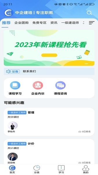 中企建培网校app是主要提供职教培训学习的应用软件,带来丰富的课程,涉及工程师、经济师、会计等不同职业,随你自由选择,视频教学,支持离线下载,随时学习,掌握最新资讯,记录学习历史,提供学习报告,轻松管理设置!