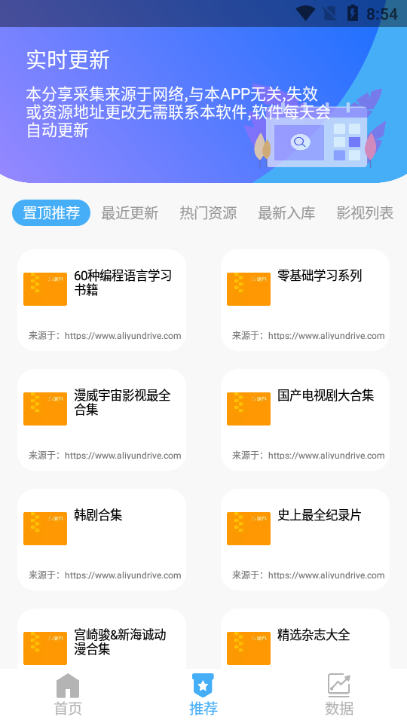 界面清爽干净,没有不必要的广告,打开即可快速搜索资源。
