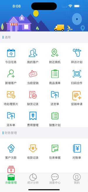 为企业提供外勤人员及业务管理;公司的促销、新品信息,实时下发到业务员的APP中。