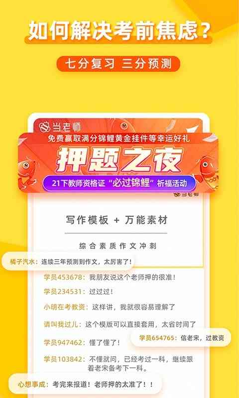 解决考前焦虑问题,10年行业经验,一线老师共创,本年度考试预测押题之夜,在考场有备而来