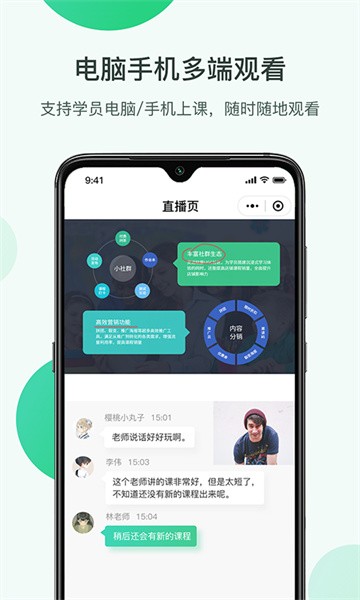 支持电脑、手机、ipad、网页等多种方式上课,随时随地学习;