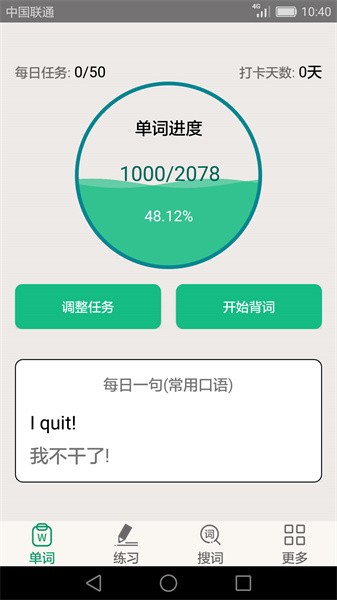 英语四六级备考app这是一个专门为大学英语所提供的学习平台。所提供功能包含了英语相关的方方面面,你可以借助该软件来不断提升自身的英语水平能力,从单词训练再到口语练习等多种功能一应俱全,有需要的用户可以来下载使用。