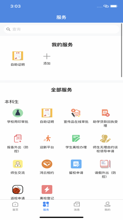 3、各种审批功能,还有课表信息查询,以及办事服务一站式推荐给你;