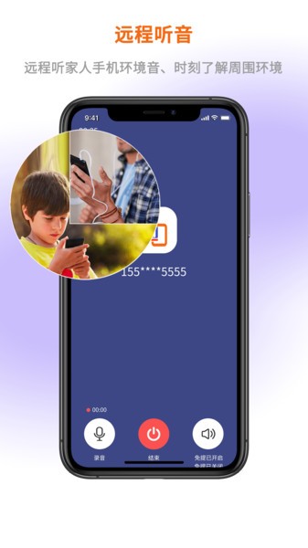 3、【实时同屏+实时听手机周围环境音】:远程同步家人好友的手机屏幕,实时听家人手机周围环境音,适用于家长管理孩子,了解孩子是否正在使用手机打游戏,同屏期间可以进行录屏和截屏操作。