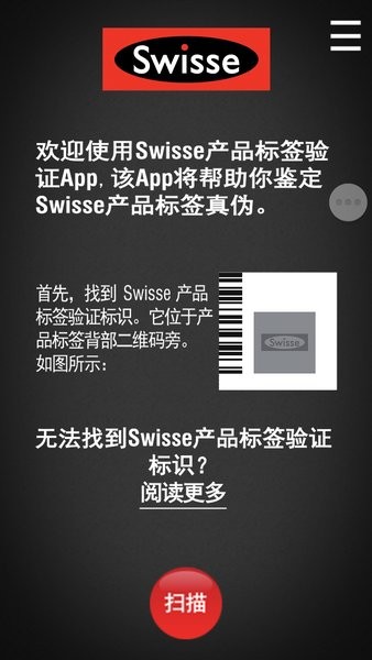 这个程序不能保证产品在swisse小瓶,被这个应用程序验证。在swisse扫描应用程序确认的swisse标签的真实性,swisse可以证实,在原点的swisse健康填充容器的内容是真实的精华产品。swisse不能保证容器的内容除了在原有的点填充。
