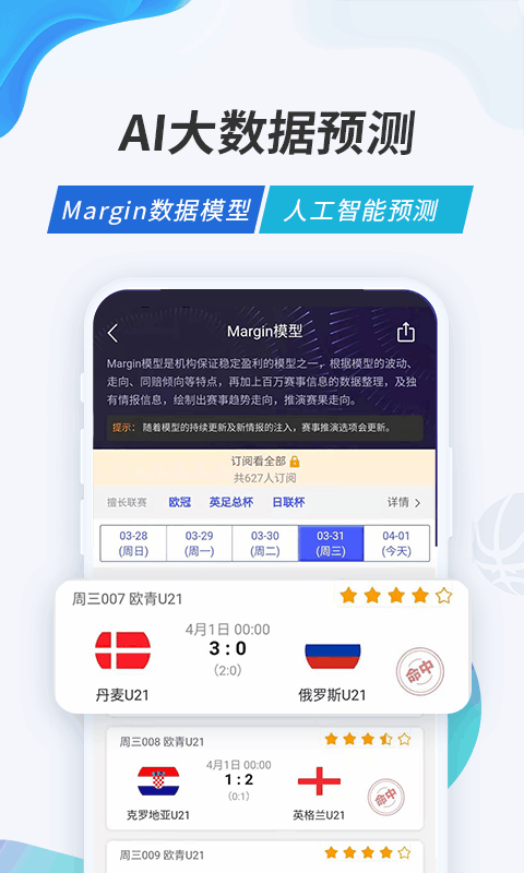 根据v站赛事历史数据,及v站科学的数据模型,推算出3种玩法的预测概率,追击高命中率。