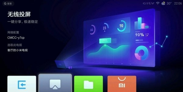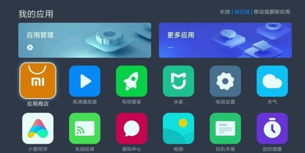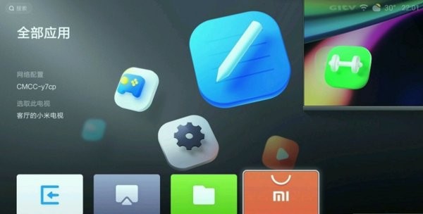 小米电视桌面的界面设计非常简洁,图标清晰,用户无需复杂操作即可快速找到所需功能。