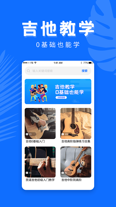 学吉他手机软件这是一个可以帮助你提升弹琴水平的学习助手,软件内提供了很多关于吉他的教学内容,图文以及视频教学一应俱全,跟着教程来进行学习即可,适合吉他新手来进行使用。