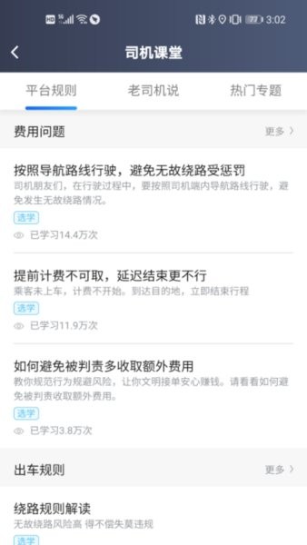 1、提供了司机课堂服务,可随时在应用中查看学习,提升自己的能力;