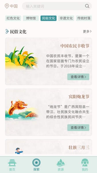 文化广西是国家文化大数据东盟区域中心云平台的移动端应用,集中对广西的红色基因库、博物馆、民俗文化、传统村落以及非遗等内容进行展示。