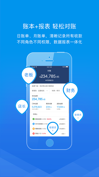 老板来商户版是为商家打造的线上收银办公营销应用平台,支持支付宝、微信、银联等多种方式收款,对账也方便简单,数据报表一目了然,管理分析高效,更提供会员营销功能,带来一站式会员消费活动,可以促进消费,享有不同的优惠,好用又方便!
