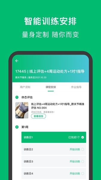 选择课程内容,根据APP课程提供的动作信息,让自己每天都可以练习校正动作
