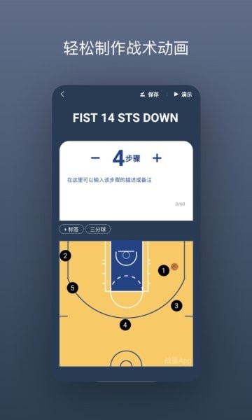 「战篮」―― 篮球战术专家,快速创建战术动画,管理常用战术,云端保存战术,支持通过网页分享给队友,帮助球员和教练更好地理解与表达篮球战术,摆脱手绘战术板杂乱的线条,提高战术水平。