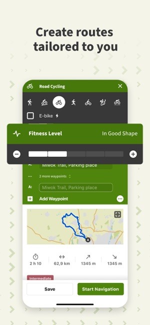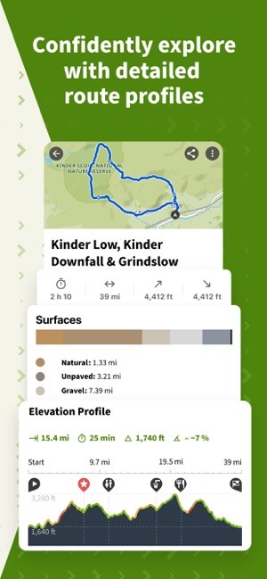 为你的运动选择一条完美的路线――无论是公路自行车的光滑沥青,山地自行车的单车架,旅游的无声自行车道,还是徒步旅行的自然小径。使用指尖即可获得的信息,如表面、难度、距离和高程剖面,向下规划到最后一个细节。