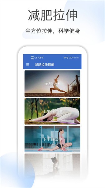 1.包含大量的减肥拉伸运动视频。用户可以在这里体验各种拉伸动作,从视频中学习最专业的动作内容。