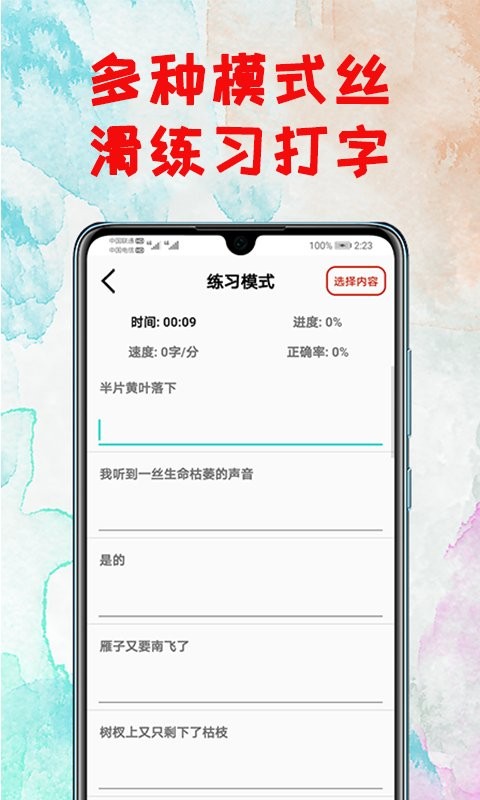 7.使用30篇励志、抒情、小故事等各式完整文章练习,非坊间app仅能以单字练习。