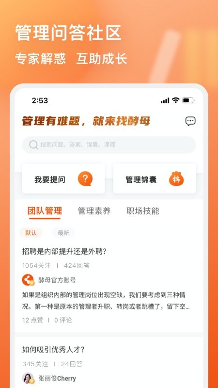 酵母工坊由创业酵母出品,是专为企业管理者打造的互助学习型app。其中包含张丽俊老师的管理读书会,来自各企业管理实战专家带来的管理视频课程,以及帮助管理者解决日常管理难题的互助问答社区和管理锦囊。从企业经营、业务增长、团队管理、职业素养等各方面帮助管理者建立底层认知,学习职场技能,提升竞争力。